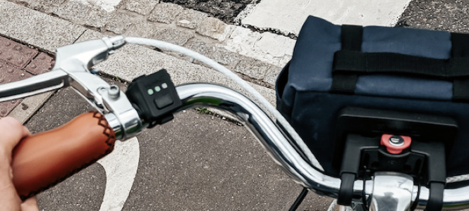 Vollkit includes only a few parts - a wheel with the motor, a bag with the battery, a wireless cadence sensor and a wireless handlebar remote. The cadence sensor detects pedalling and commands the motor to assist. Mobile apps allow to set preferences like max speed or power, to check battery health and to view your ride statistics.